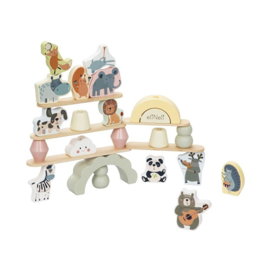 Dřevěná balanční hra s veselými zvířátky, destičkami, kostičkami a s duhou, je multifunkční hračkou, se kterou si užijí spoustu zábavy děti i celá rodina. Při této balanční hře může balancovat vše co najdete v balení. Jak vysokou pyramidu a co všechno k její výstavbě děti použijí je čistě na jejich fantazii. Při balanční hře děti zdokonalují jemnou motoriku, koordinaci, logické myšlení, prostorovou představivost, učí se soustředit se a trpělivosti..