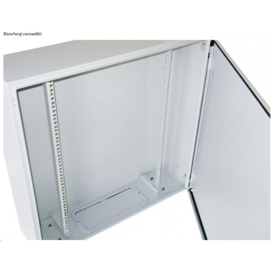 Venkovní nástěnný rozvaděč vyrobený z válcované oceli o tloušťce 1,5 mm.Třívrstvá povrchová úprava. Provedení: dveře - plné, otevíratelné o 110°, zaměnitelný směr otevírání, těsnění z pěnového polyuretanu zádní kryt - plný boční kryt - plný horní kryt - plný