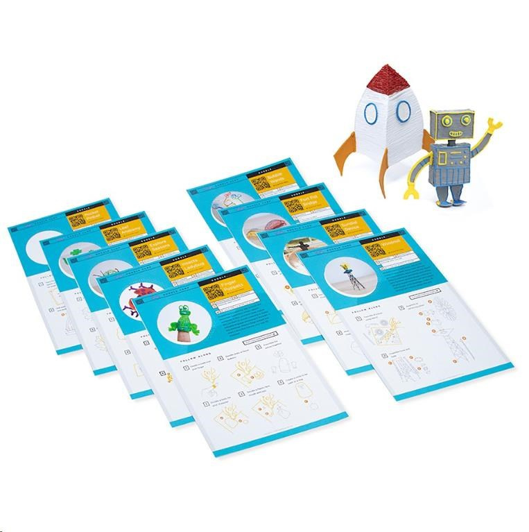 - 12 šablon 3D modelů krok za krokem – sova, pejsek, lapač snů, robot, skateboard, Eiffelova věž, motýl, raketoplán, stoh knih, brýle, šikmá věž