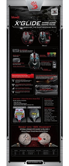 A4tech BLOODY V8 herní myš, až 3200DPI, V-Track technologie, 160KB paměť, USB, CORE 2, kovové podložky