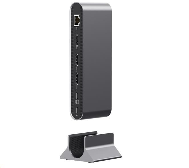 Je vybaven vysokorychlostním USB, čtečkami karet SD/microSD, video výstupem s rozlišením 8K, gigabitovým Ethernetem a kombinovaným audio konektorem, stačí připojit napájecí adaptér USB-C a rychle se nabíjí.