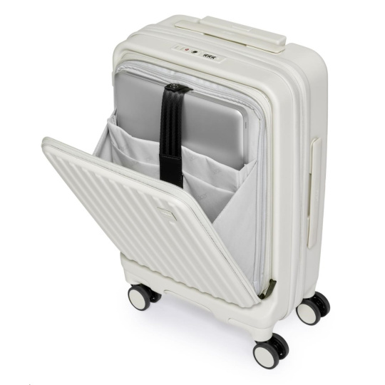 Inovativní vpředu otevíraná konstrukce poskytuje rychlý přístup k notebooku, dokumentům a mobilním zařízením, když zavazadlo stojí ve vzpřímené poloze, a šetří tak místo i čas. Za dělícím panelem na zip se nachází dostatečný úložný prostor s utahovacím popruhem, který udrží vaše věci v bezpečí a nabízí flexibilní kapacitu pro každou cestu. Velikost 20'' je ideální pro cenově výhodná příruční zavazadla leteckých společností.