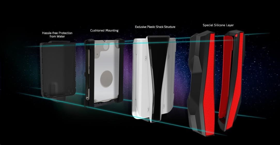 Introducing the world's first durable external hard disk with RGB lighting. With the HD770G, not only can you store all your games and data, but store them with flair. What is more, the HD770G exceeds the IP68 standard meaning it's waterproof and dustproof and is shock-resistant with its robust triple-layer construction. What more could you ask for!