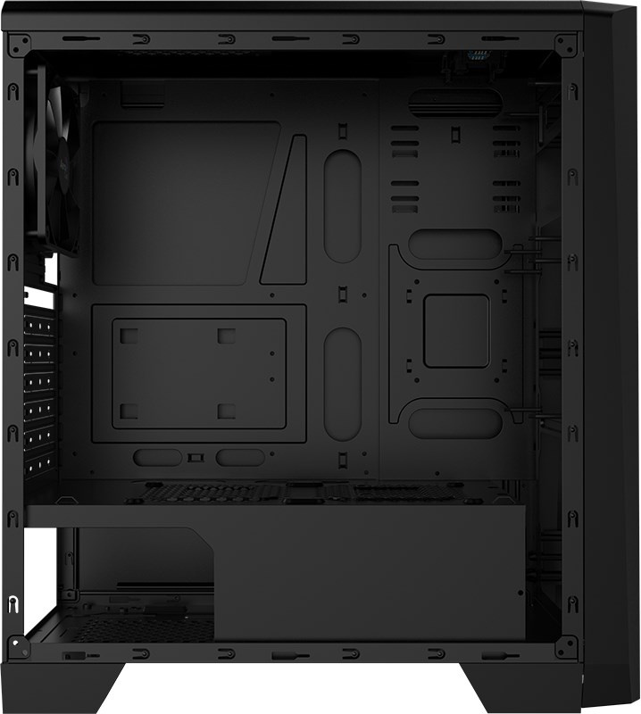 Skříň formátu Middle Tower se stylovým designem. RGB LED na předním panelu s 13 režimy osvětlení. Dodává se s akrylovým bočním panelem a podporuje kapalinové chlazení.