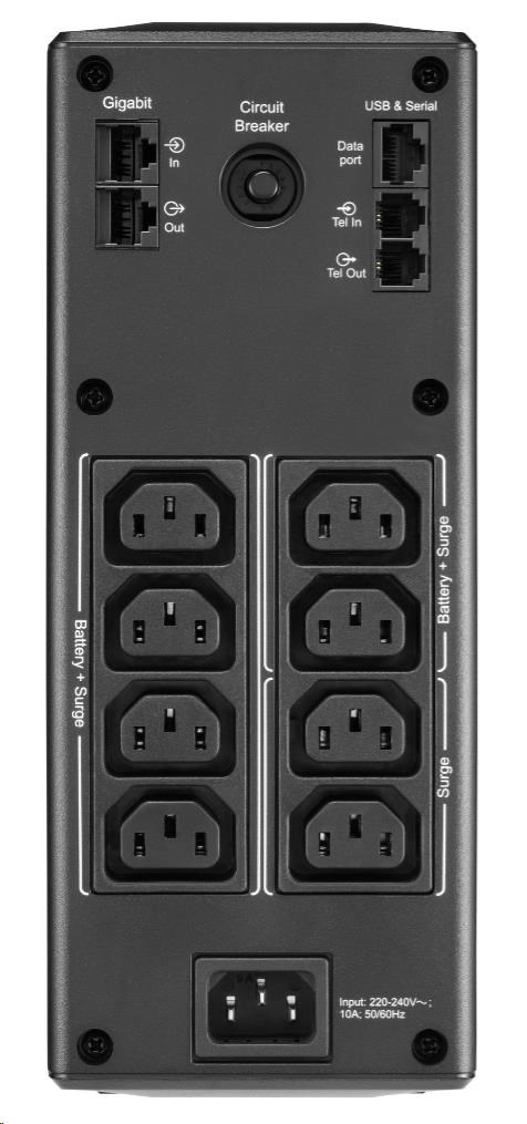 | Typ zásuvek | (8) IEC 320 C13 (Záložní provoz na baterie) |
