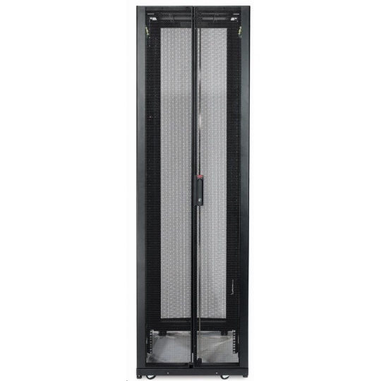 Široká skříň s možnostmi rozšířené správy kabelů pro servery s vysokou hustotou napájení a síťové komponenty. Výška 45U umožňuje snadný transport dveřmi.