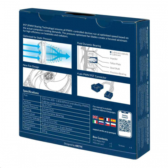 seamlessly and synchronously with other fans thanks to ARCTIC's PWM Sharing Technology (PST). The newly developed motor with a low coil temperature significantly increases the life span of the fan. Therefore we have extended the warranty to 10 years.