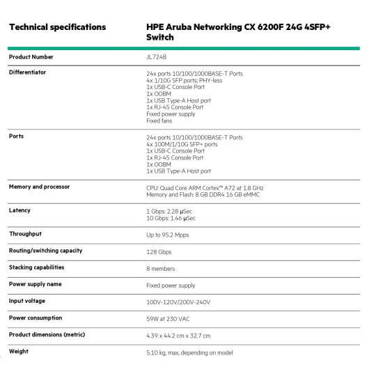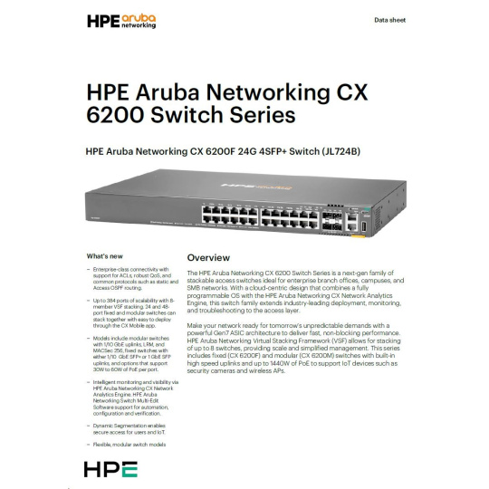 HPE Aruba Networking CX 6200F 24G 4SFP+ Switch (JL724A)