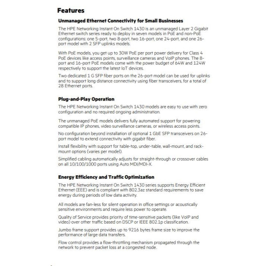 | Aruba Instant On 1430 8G Class4 PoE 64W Switch (R8R46A) | |