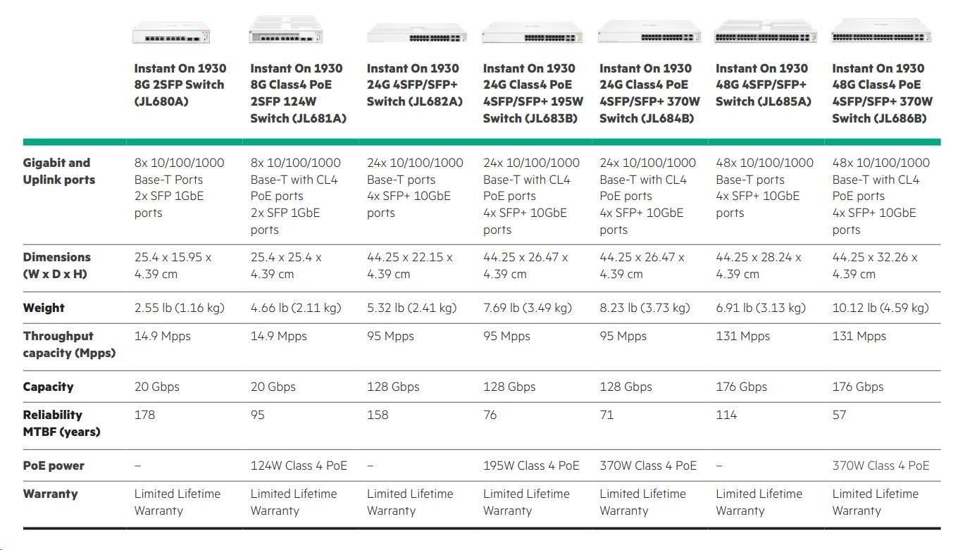 The Aruba Instant On 1930 switches features advanced, smart-managed, fixed- configuration Gigabit switches designed for small businesses that are easy-to-deploy and affordable. They're made to handle today's bandwidth-heavy applications like voice and video conferencing, enabling consistent connectivity to enhance performance.