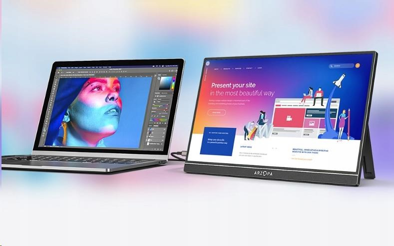 Přenosný monitor Arzopa Z1C 16,1'' je vhodnou volbou pro lidi, kteří potřebují další obrazovku - doma, na služebních cestách nebo při studiu na dálku. Díky kompaktním rozměrům a tenkému provedení se snadno vejde do brašny na notebook a jeho lehká konstrukce (780 g) nezatíží vaše zavazadla. Je dobrou volbou, pokud chcete rozšířit svůj pracovní prostor, aniž by zabíral mnoho místa.