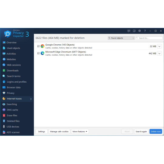 Ashampoo Privacy Inspector se vrátil, nyní robustnější a všestrannější než kdy dříve! Mějte komplexní kontrolu nad svými daty a zařízeními: Výkonná vyhledávací funkce odhaluje uložené informace a podezřelý obsah, zatímco přehled USB zařízení poskytuje přesné podrobnosti o tom, kdy a jaký hardware byl k vašemu počítači připojen. ADS Scanner navíc odhalí neviditelné datové toky.