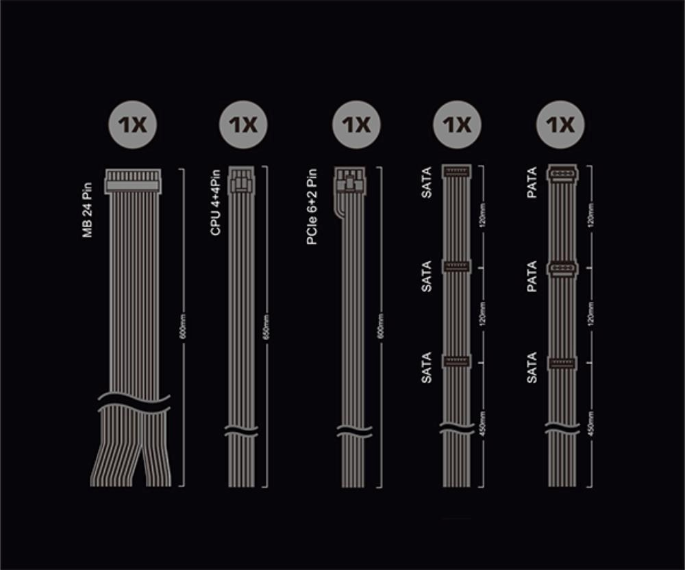 | ATX 20+4pin Konektor | 1x / 1x (600 mm) |