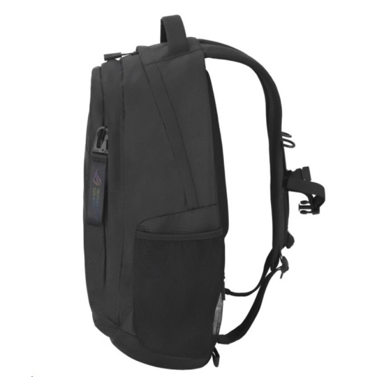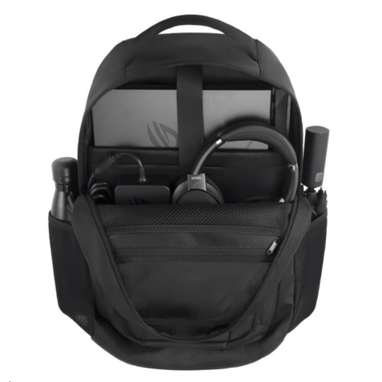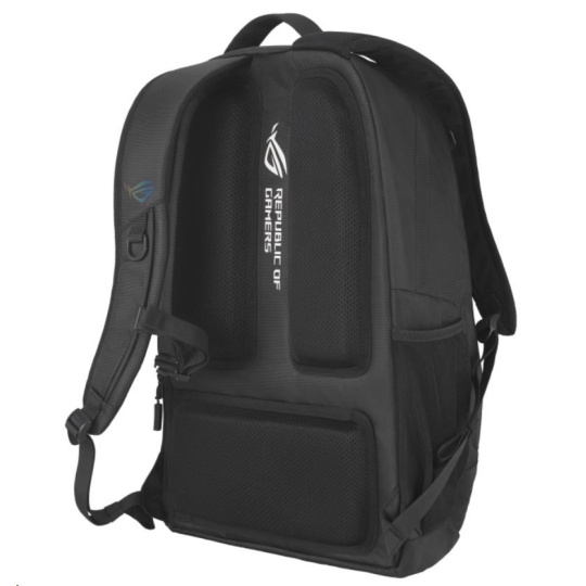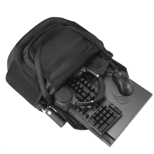 Objem 35 litrů s mnoha vnitřními přihrádkami a polstrovaným pouzdrem na notebook, do kterého se vejde až 18palcový notebook. Odvážný estetický vzhled brašny ROG umocňuje reflexní nápis cybertext. Vysoce odolný polyester 1260D je odolný proti poškrábání a vodě. Osobní věci bezpečně uložíte do skrytých zadních kapes.