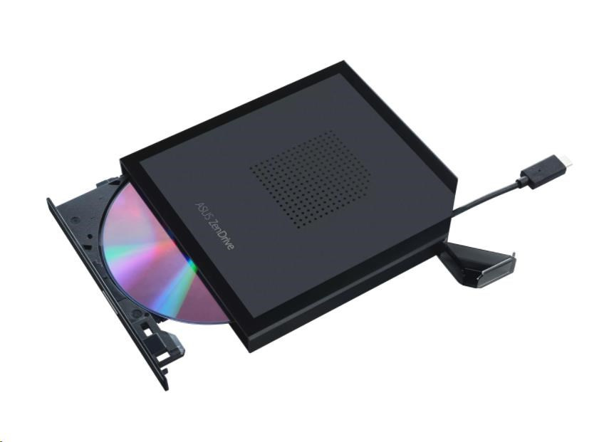 ASUS ZenDrive V1M external DVD drive and writer with built-in cable-storage design, USB-C® interface, compatible with Windows 11 and macOS, M-DISC support, comprehensive backup solutions included
