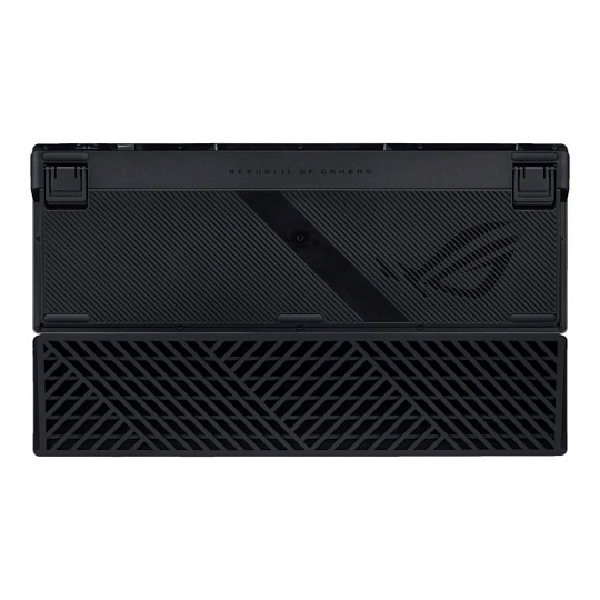ROG Azoth 96 HE analogová herní klávesnice s vyměnitelnými magnetickými spínači ROG HFX V2 a senzorem ROG Hall. Nabízí OLED displej, třísměrný ovládací knoflík, trojí způsob připojení s bezdrátovou technologií ROG SpeedNova 8K, režim Zone, šestivrstvé tlumení a odnímatelné silikonové opěrky zápěstí.