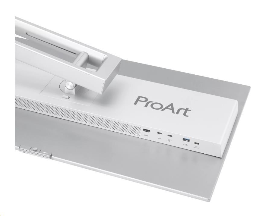 ProArt Display nabízí dva porty Thunderbolt 4 a port HDMI 2.1 pro kompatibilitu se současnými i budoucími displeji a periferiemi. Jeden z portů Thunderbolt 4 nabízí až 96W Power Delivery pro nabíjení zařízení a také možnost řetězového propojení několika displejů přes jediný port bez nutnosti použití rozbočovače nebo přepínače. Vestavěný rozbočovač USB 3.2 obsahuje jeden port USB typu A a typ C, což umožňuje snadné připojení k různým zařízením a periferiím a také nabíjení kompatibilních zařízení.