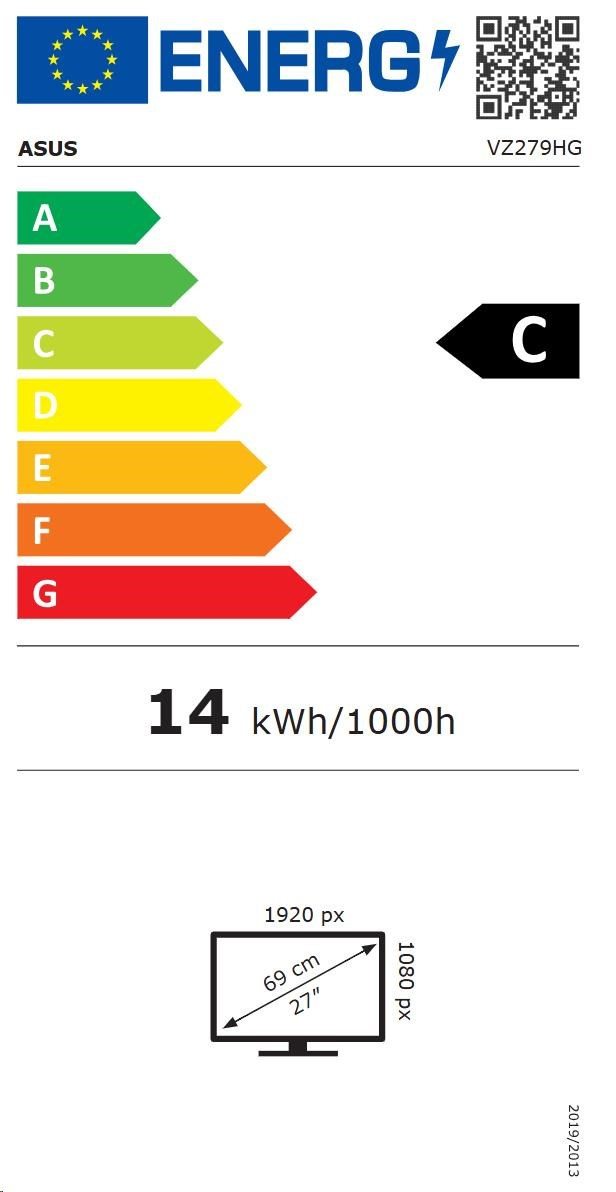 ASUS LCD VZ279HG, 27" 1920x1080, 250nits, 120Hz, 1ms, HDMI, VGA, Audio, VESA, Black