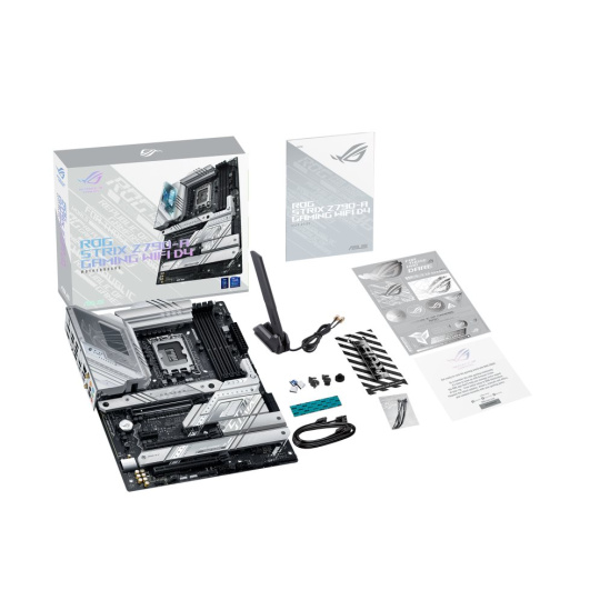 Intel® Z790 LGA 1700 ATX motherboard with 16 + 1 power stages, DDR4 memory support, four M.2 slots, PCIe® 5.0 x16 SafeSlot with Q-Release, WiFi 6E, USB 3.2 Gen 2x2 Type-C® rear I/O port and additional front-panel connector with PD 3.0 up to 30W, AI Overclocking, AI Cooling II, and Aura Sync RGB lighting
