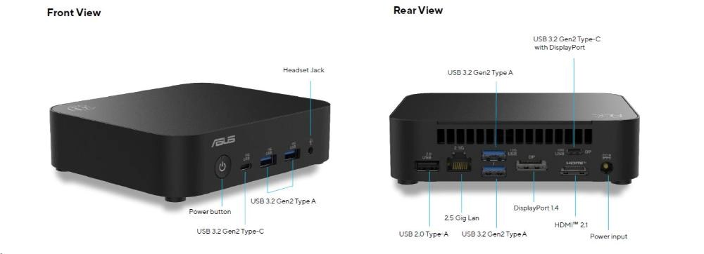 ASUS NUC 14 Essential RNUC14MNK3500002/N355 Procesor/DDR5-4800 SODIMM/USB-A,C/M.2 2280/Wi-Fi/LAN/EU Napájecí kabel