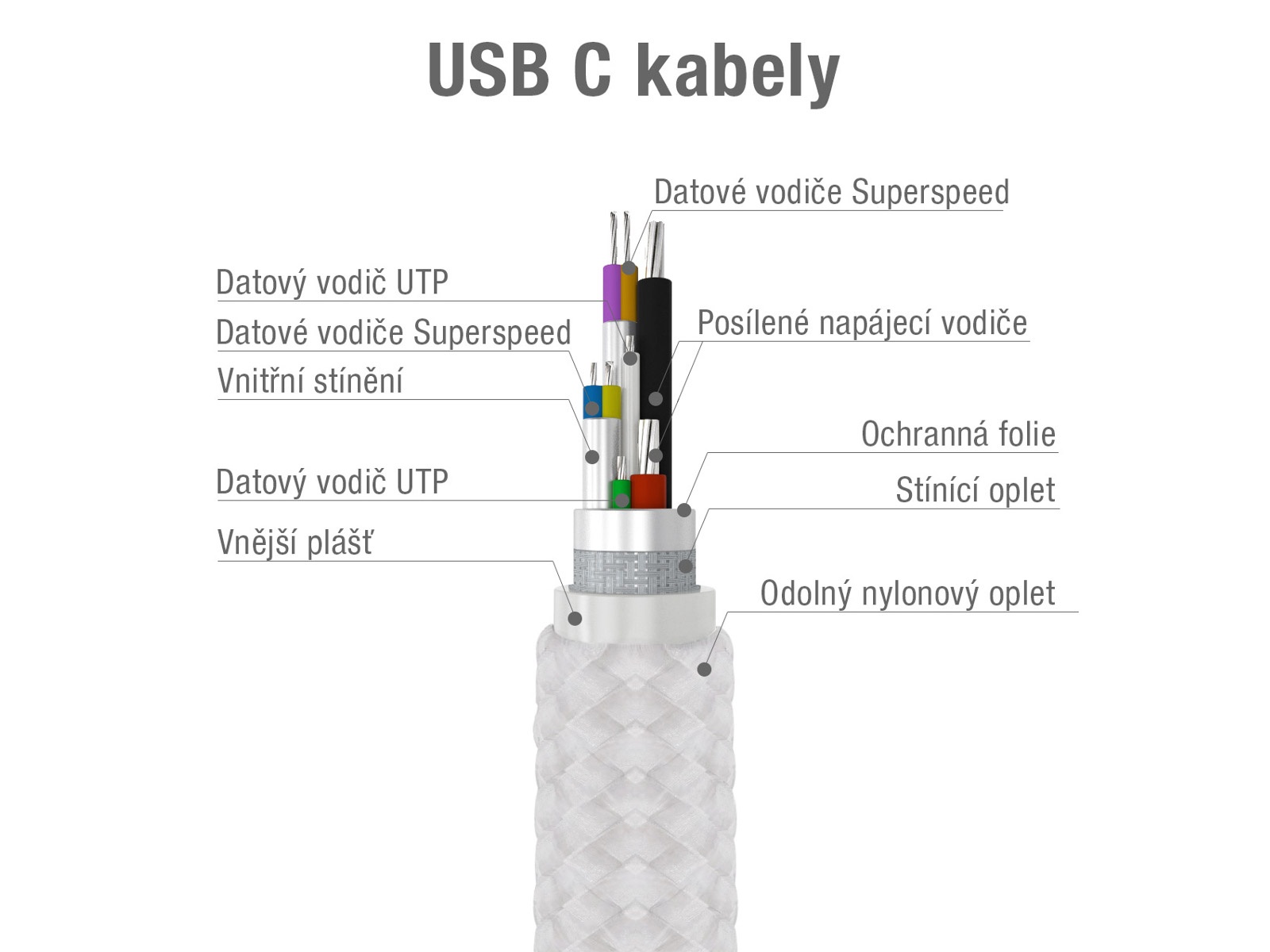 Samostatně odstíněné datové vodiče pro bezproblémový a rychlý přenos dat.