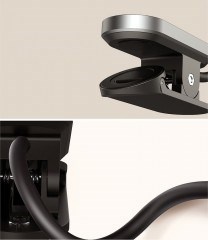Lampičku můžete namontovat nejenom pomocí klipu. Když je zamčená může sloužit jako podstavec a stát stabilně na stole.