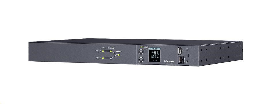 BAZAR - CyberPower Rack ATS Metered, 1U, 16A, (8)C13 (2)C19, IEC-320 C20 (2) - Poškozený obal (Komplet)