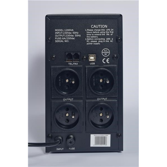 Počet výstupních zásuvek:4; Použití:Desktop; Provedení:Tower; Zdánlivý výkon VA:1200; Topologie:Line-Interactive; Fáze (Vstup/Výstup):1:1; Typ výstupu:FR; Ochrana telefonní sítě.... více