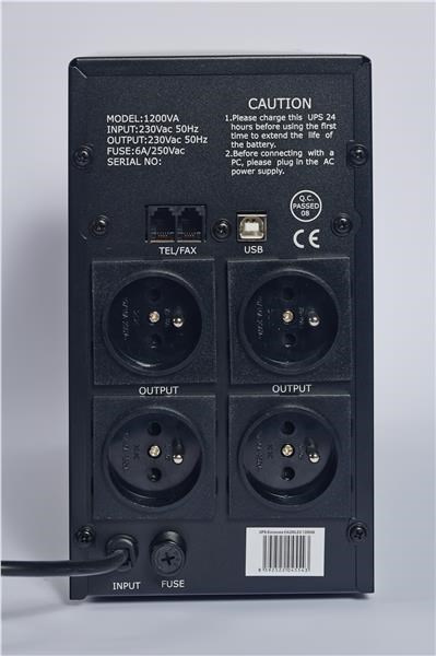 Počet výstupních zásuvek:4; Použití:Desktop; Provedení:Tower; Zdánlivý výkon VA:1200; Topologie:Line-Interactive; Fáze (Vstup/Výstup):1:1; Typ výstupu:FR; Ochrana telefonní sítě.... více