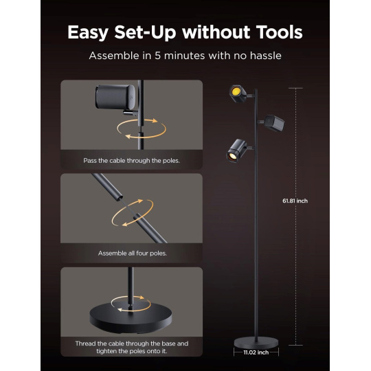 Govee Tree Floor Lamp je připravena k okamžitému použití bez složité montáže. Stačí lampu rozbalit, zapojit a spustit aplikaci – vše je rychlé a intuitivní. Díky tomu si můžete užívat chytré osvětlení okamžitě, bez zbytečných starostí nebo nástrojů.