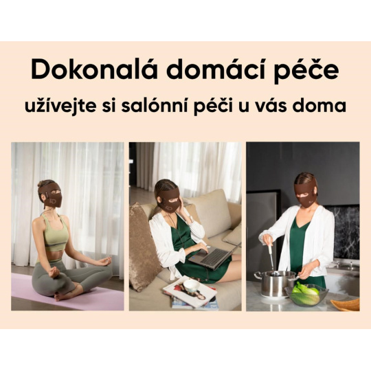 - Flexibilní design – pohodlí a rovnoměrné působení světla. Maska z měkkého potravinářského silikonu dokonale přilne k obličeji a zajišťuje rovnoměrné rozložení světla bez ztrát energie a je pokožkou perfektně snášená. Dálkový ovladač je akumulátorový, takže máte volnost pohybu