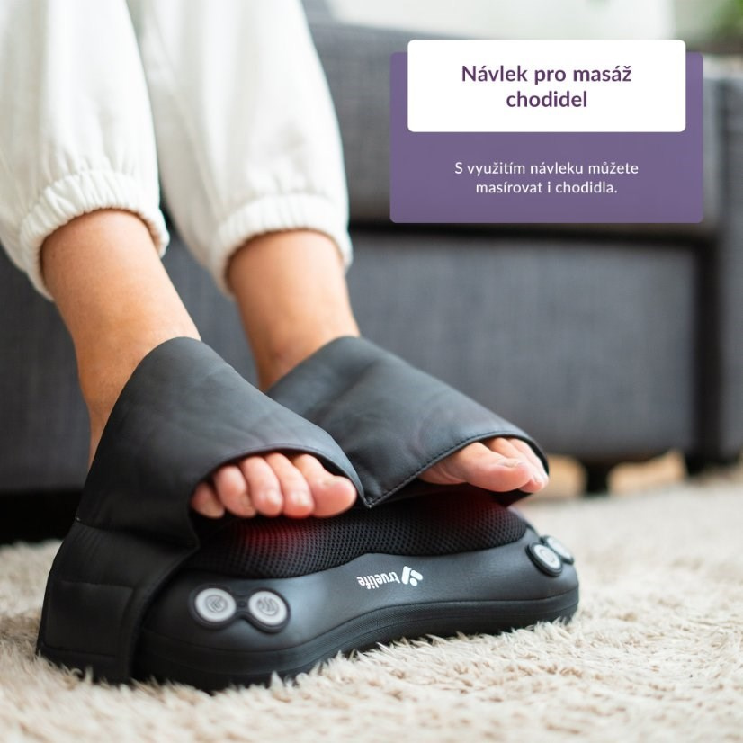 Pro masáž chodidel je k polštáři přibalen návlek na nohy.