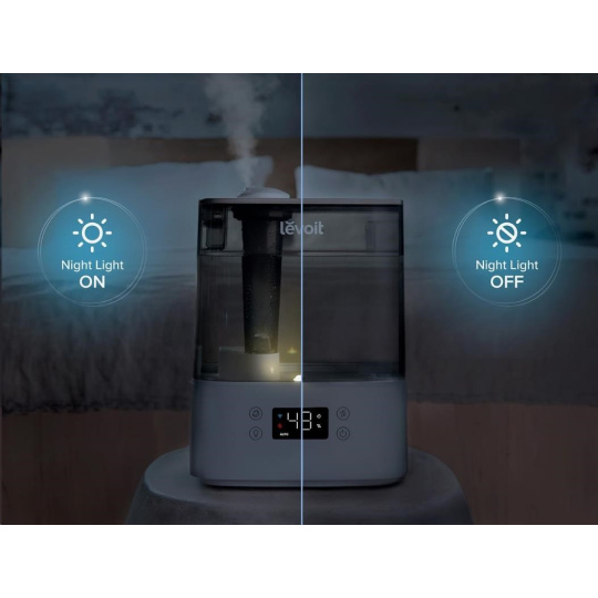 Zvlhčovač vzduchu Levoit Classic300S Smart lze ovládat přímo na přehledném podsvíceném LED displeji nebo také přes aplikaci na chytrých zařízeních Apple nebo Android. Nebo si ho můžete dokonce připojit do svého Smart Home a ovládat hlasem přes Google Assistant nebo Amazon Alexa. Senzor vlhkosti zobrazuje vlhkost v reálném čase a v automatickém režimu tak okamžitě reaguje na změny vlhkosti. Vždy by se mělo jednat o rozmezí mezi 40 % až 60 %. Přes aplikaci si můžete informace kontrolovat nebo si své režimy plánovat.