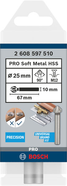Bosch záhlubník PRO Soft Metal HSS, 25 × 67 mm, M12