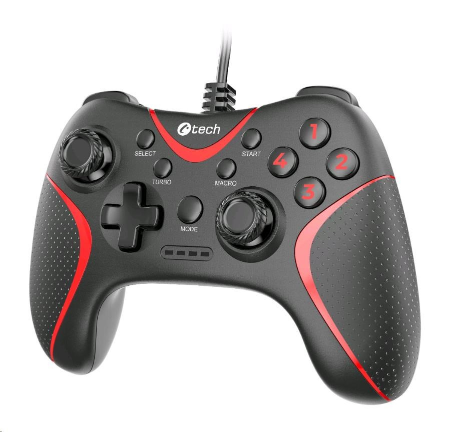 C-TECH gamepad Theon pro PC/PS3, 2 programovatelná makro tlačítka, 2x analog, X-input, vibrační, 1,8m kab