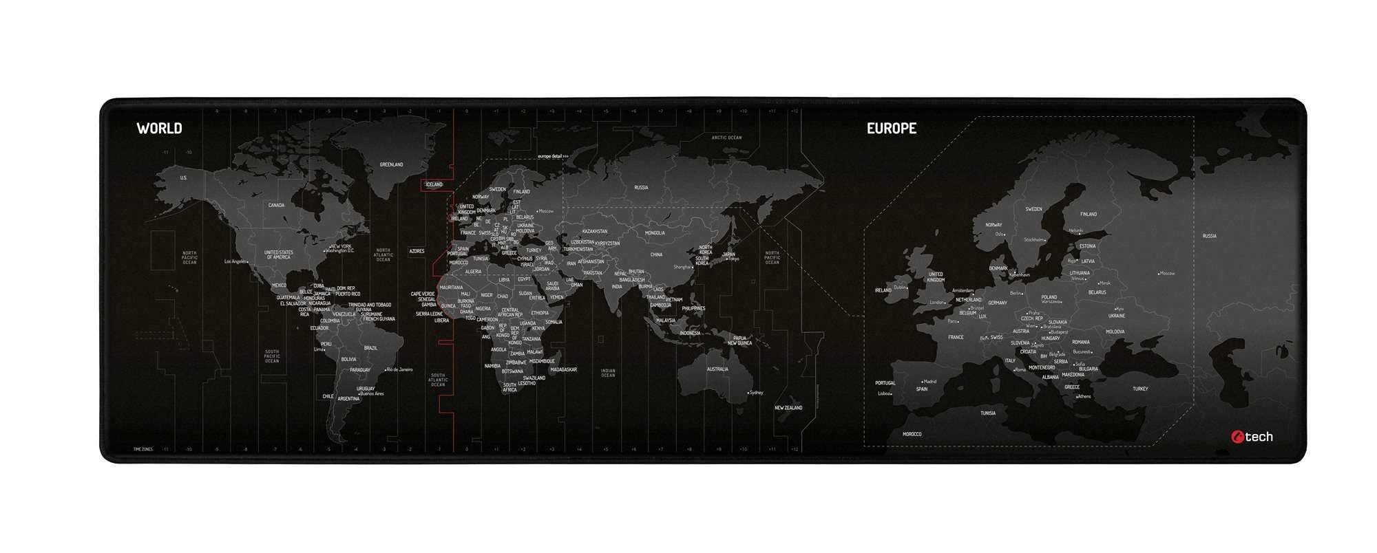 C-TECH herní podložka pod myš MP-01W (World), 900x270x4mm, obšité okraje