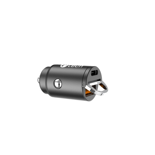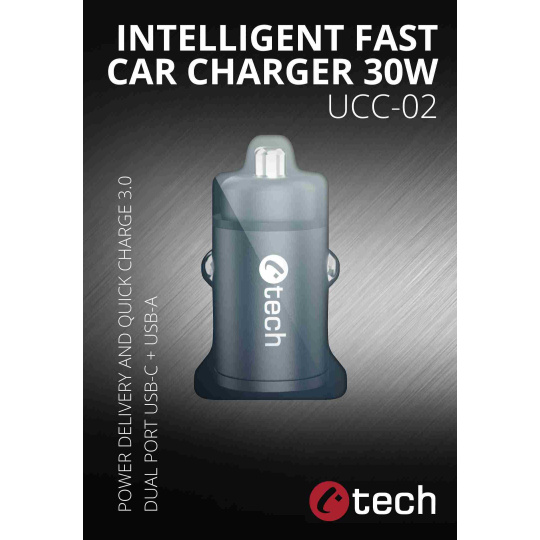 Miniaturní nabíječka do auta C-tech UCC-02 s podporou mnoha technologií rychlého nabíjení se postará o svižné nabití tabletu nebo telefonu. Nabízí vám celkem 2 výstupy typu USB-A a USB-C s celkovým výkonem 30W. Tato malá nabíječka podporuje moderní technologie rychlého dobíjení Power Delivery 3.0, Quick Charge (QC 3.0 + QC 2.0) a řadu dalších standartů rychlého dobíjení. Nabíječku lze použít v osobních a dodávkových vozech s napětím 12 V, ale i u velkých nákladních automobilech s 24V zásuvkou. Inteligentní čip dokáže rozpoznat nabíjené zařízení a přizpůsobit tak potřebné napětí, tímto způsobem šetří energii a zároveň chrání baterii. Nabíječka C-tech UCC-02 je vybavena vybavena 5-ti násobnou ochranou a ochrání tak vaše digitální přístroje před přepětím, podpětím, přetížení sítě, zkratům i vysokým teplotám. Tělo nabíječky je vyrobeno z hliníku a opatřeno stylovou černou povrchovou úpravou - dokonale tak splyne s většinou interiérů. Miniaturní rozměry 73mm x 33mm a nízká váha, činí nabíječku snadno přenosnou, můžete ji mít stále u sebe a využívat její kvality prakticky v každém automobilu. Skládaný úchyt na vrchní straně nabíječky usnadňuje její vytahování ze zásuvky.