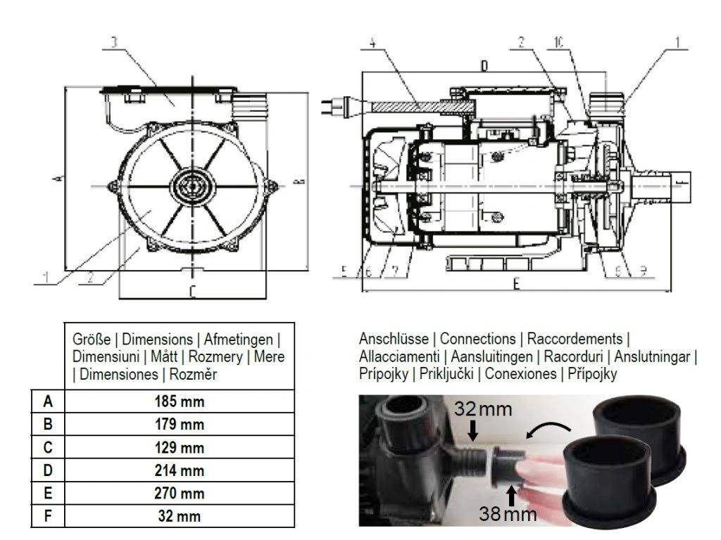 | Připojení sací a výtlačné strany 32/38 mm |