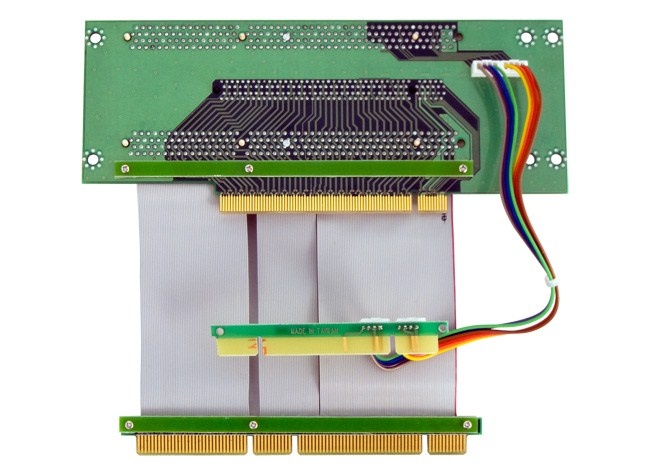 | The Riser card has one PCI-E 16x slot and two 3,3V 64-bit PCI-X slots, PCI-X extension cable, PCI signal cable