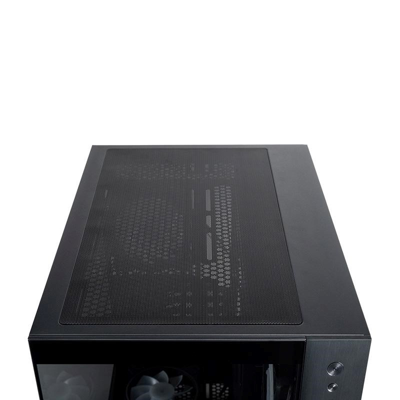 CHIEFTEC Visio má panely z tvrzeného skla na levé i přední straně a dvoukomorové uspořádání pro nejnovější základní desky s připojením zezadu (kompatibilní s ASUS BTF a MSI Project Zero). Tato konstrukce zjednodušuje správu kabelů a zajišťuje čistý výhled do interiéru a nerušené proudění vzduchu.