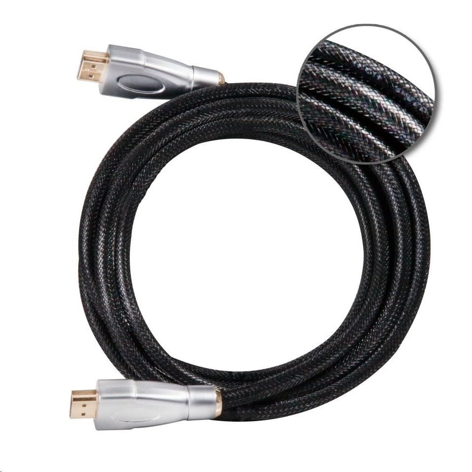 Kabel 3D Club HDMI ™ 2.0 High Speed 4K UHD umožňuje propojení vašeho herního PC nebo notebooku s technologií HDMI ™ 2.0 k UHD monitoru nebo k jinému zařízení s podporou rozhraní HDMI ™ 2.0. Plně podporuje specifikaci ‘HDMI High Speed s rozhraním Ethernet‘, která zajišťuje podporu videa až ve 4K UHD 3840x2160p při 60Hz, včetně audio a datových toky. Zahrnuje vyhrazený datový kanál umožňující vysokorychlostní síťové připojení až do rychlosti 100 Mb/s.