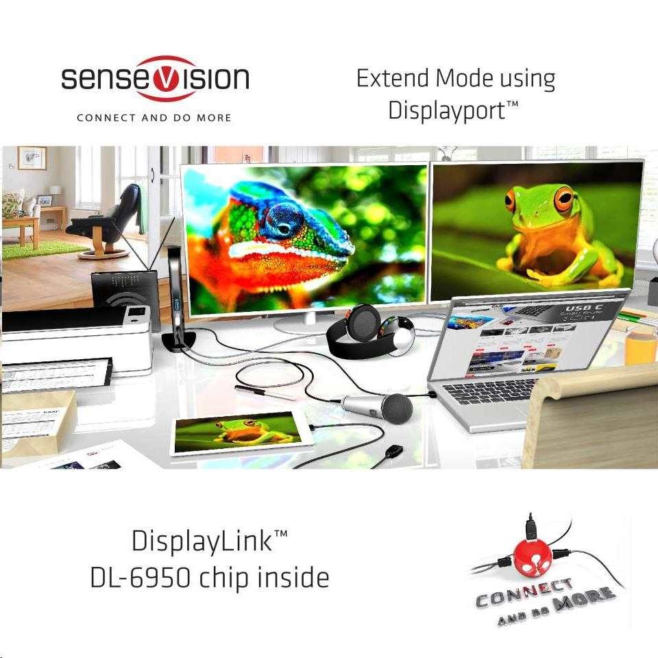 CSV-1460 - The SenseVision USB 3.1 Gen 1 Dual Display 4K 60Hz Docking Station is designed to satisfy all your connectivity demands. It provides no less than 6 USB 3.1 Gen 1 Ports, Headphone connection, Microphone connection, Gigabit Ethernet port and 2 x Displayport™ outputs.