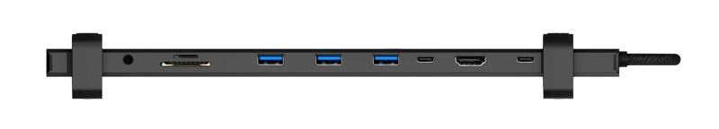 Prakticky tvarovaná USB-C dokovací stanice "Multi10in1" pro připojení až 10 periferií (2x USB-C, 1x HDMI, 3x USB-A, 3.5 mm jack, RJ45 Gigabit Ethernet. SD karta, MicroSD karta).