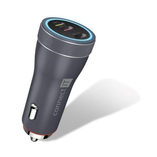 Unikátní tříportová nabíječka do auta CONNECT IT "Duplex" s kombinací výstupů USB-C a Lightning s kombinovaným výkonem 55 W.
