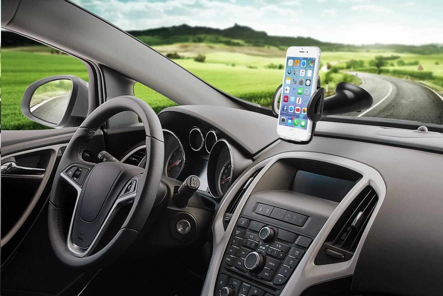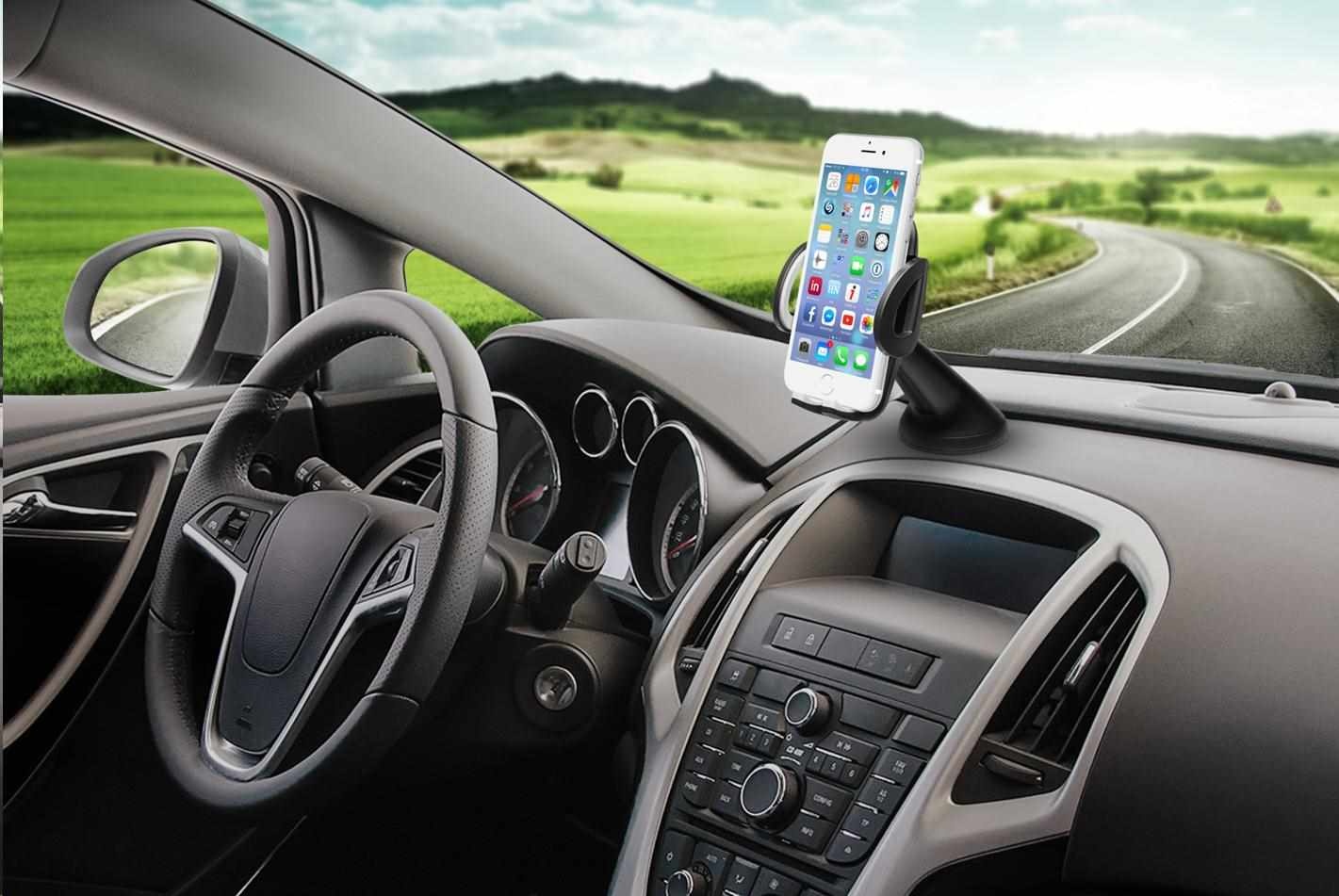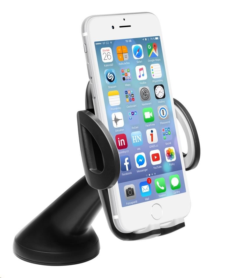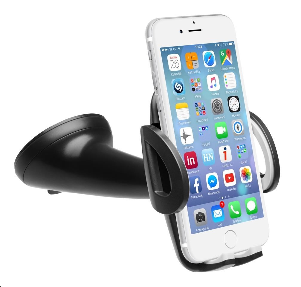 Univerzální držák do auta slouží k uchycení mobilního telefonu na sklo nebo palubní desku vozu.