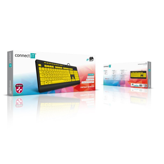 CONNECT IT Klávesnice FOR HEALTH CONTRAST, s velkým fontem, membránová, drátová, CZ/SK, Žluto-Černá