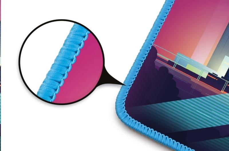 Podložka má měkký, příjemný povrch s nadčasovým cyber potiskem. Při velikosti herní plochy 320 × 245 mm vám nikdy nedojde prostor k pohybu. Velkou výhodou je pogumovaná protiskluzová spodní strana a antistatický povrch, po kterém bez problému bude jezdit každá myš. Materiál byl navržen tak, aby odpuzoval vodu a nečistoty. Podložka má obšité okraje speciální kvalitní svítící nití, která ve tmě jemně svítí.