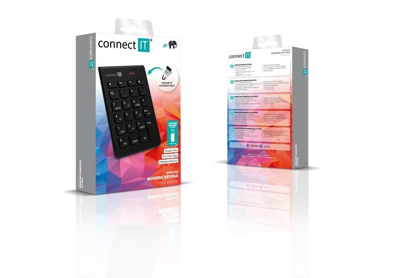 CONNECT IT NumCalc bezdrátová numerická klávesnice, 1x AAA baterie, černá