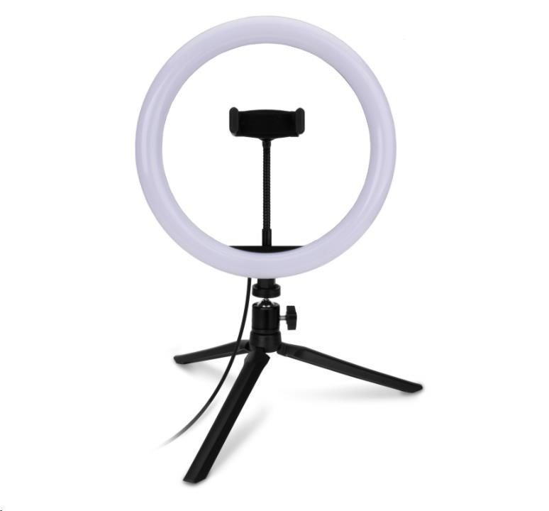 | Obsah balení | - Kruhové LED světlo - Přívodní kabel s dálkovým ovládáním - Flexibilní držák mobilního telefonu - Stativ s kulovou hlavou - Návod k obsluze |