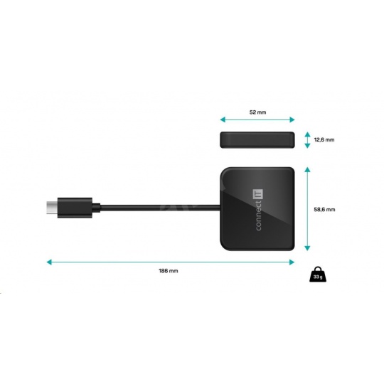CONNECT IT CHU-7050-BK USB-C hub 3in1 (USB-C, USB-A, HDMI), black